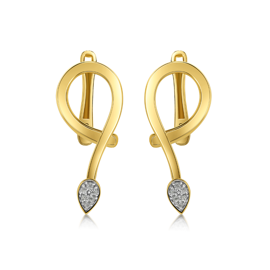 Cercei din aur galben de 14K, cu pietre cubic zirconia și Rodiu alb.