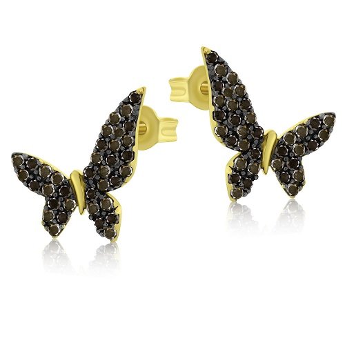 Cercei din aur galben de 14K cu pietre Cubic Zirconia.