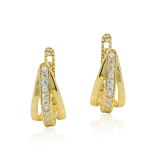 Cercei aur galben,14k, decorati cu zirconia albe