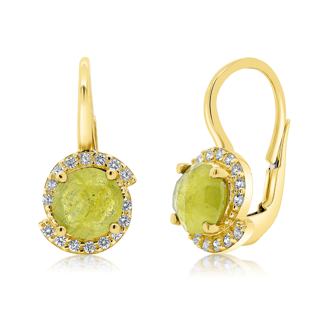 Cercei din aur galben de 14K, cu pietre Cubic Zirconia și Agată.