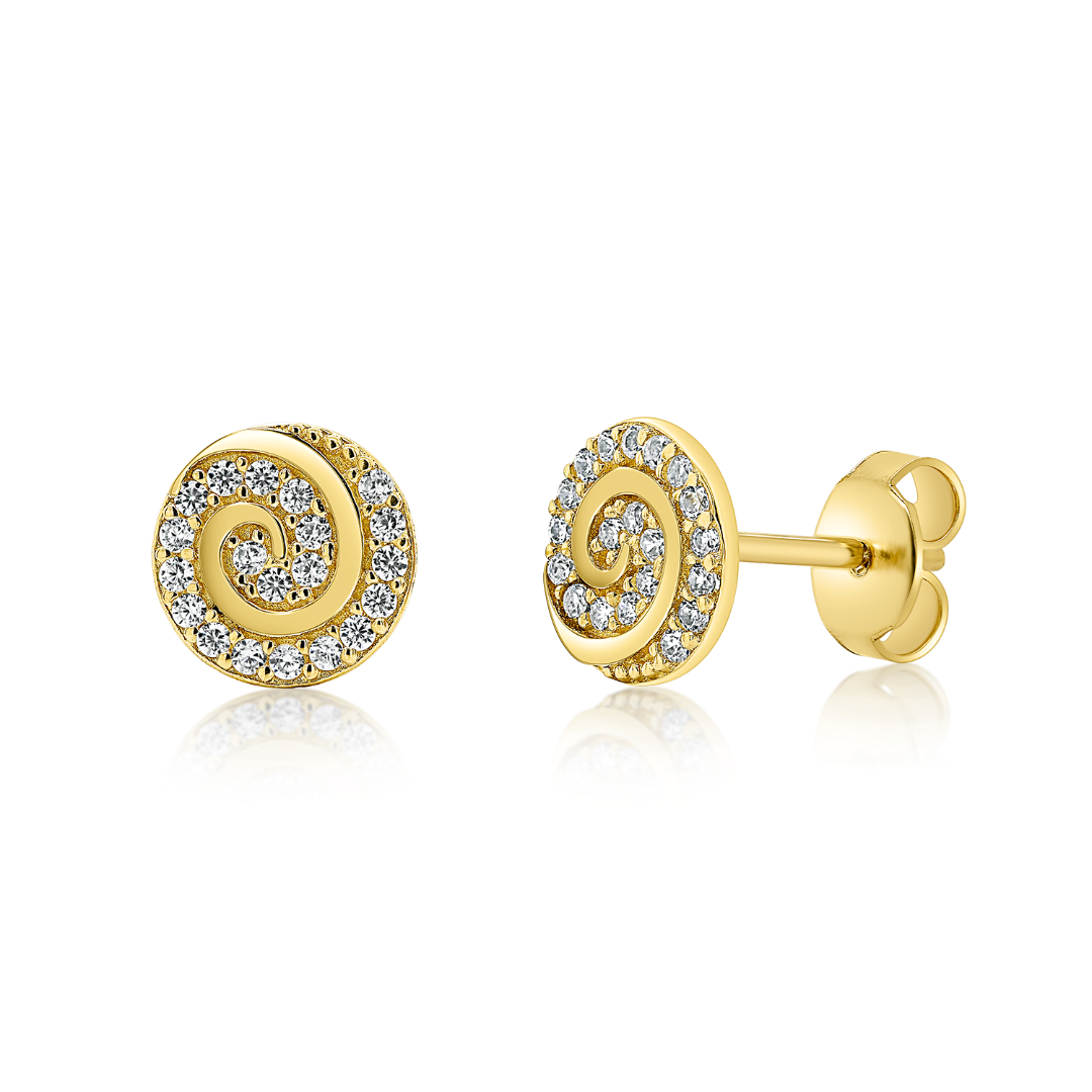 Cercei din aur galben de 14K cu pietre cubic zirconia.