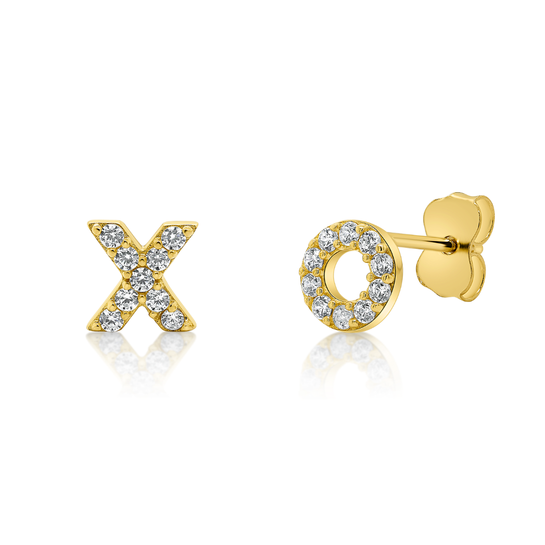 Cercei X și O din aur galben de 14K cu zirconii incolore.