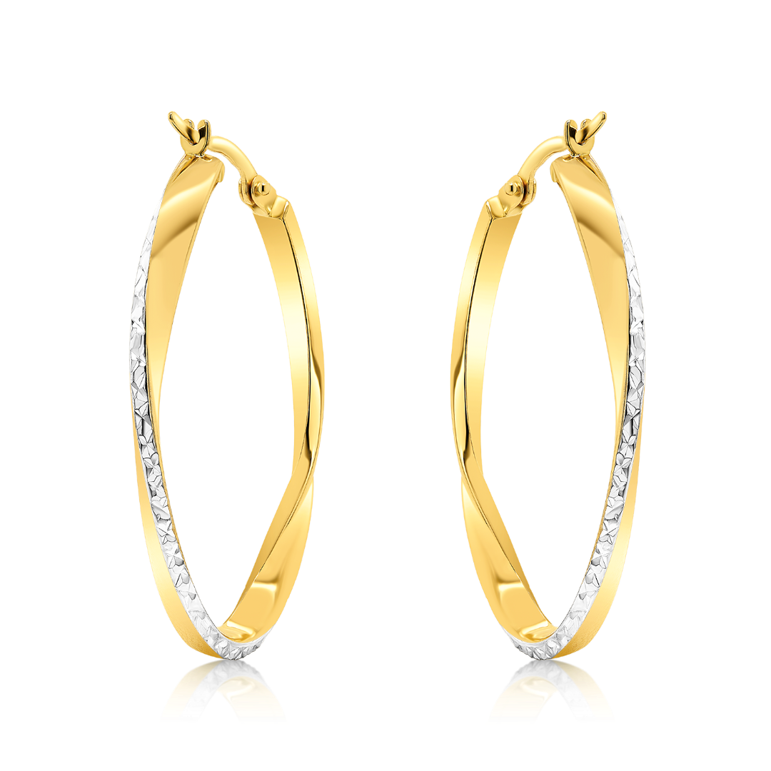 Cercei din aur galben de 14K cu element din aur alb fațetat