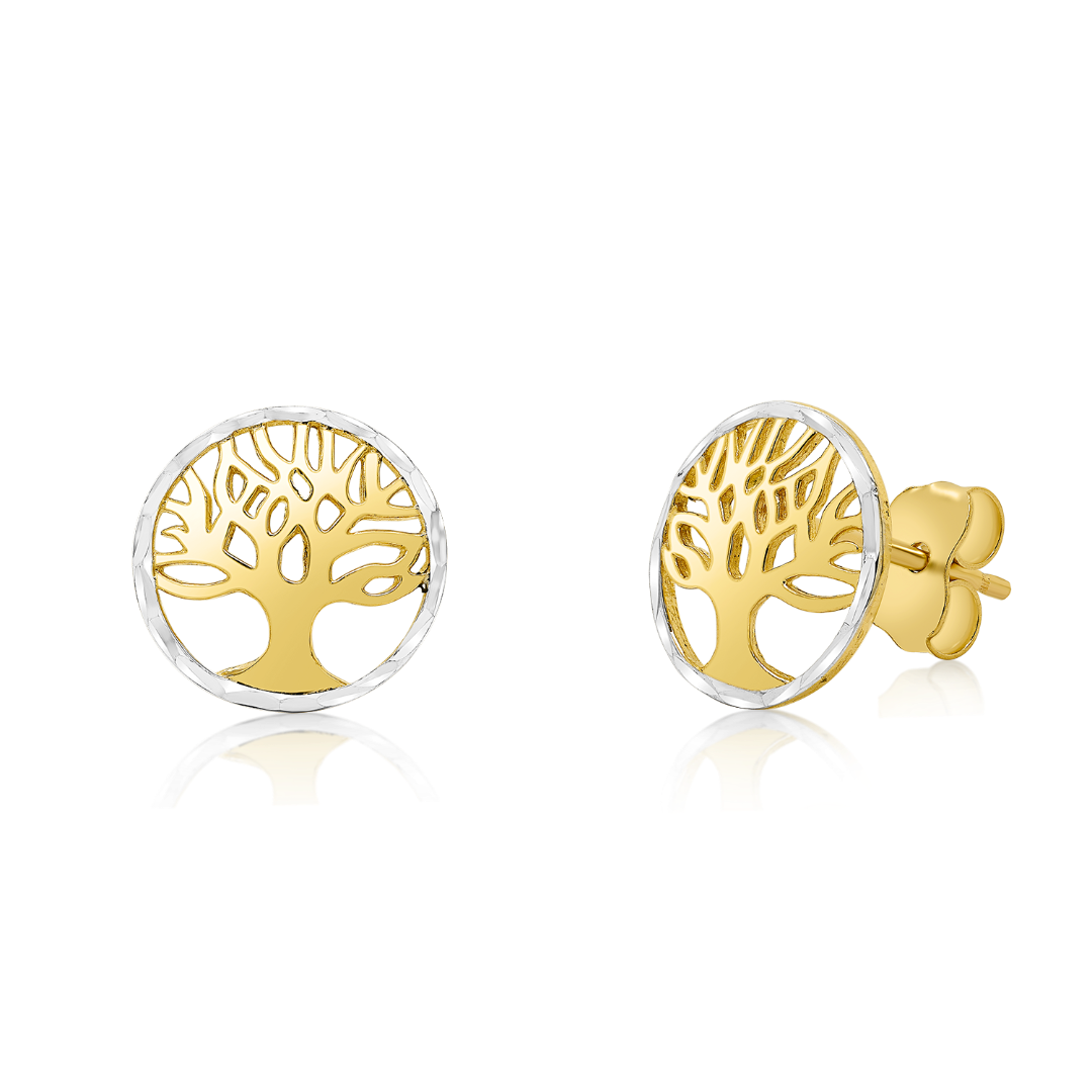 Cercei cu pomul vieții din aur galben de 14K și elemente din aur alb.