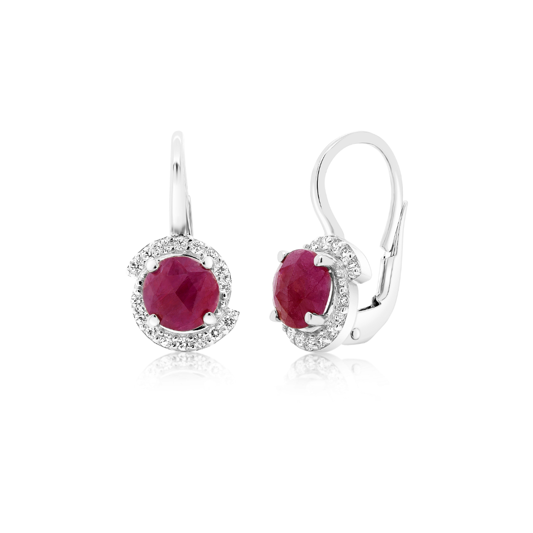 Cercei din aur alb de 14K, cu pietre Cubic Zirconia si corindon rosu.