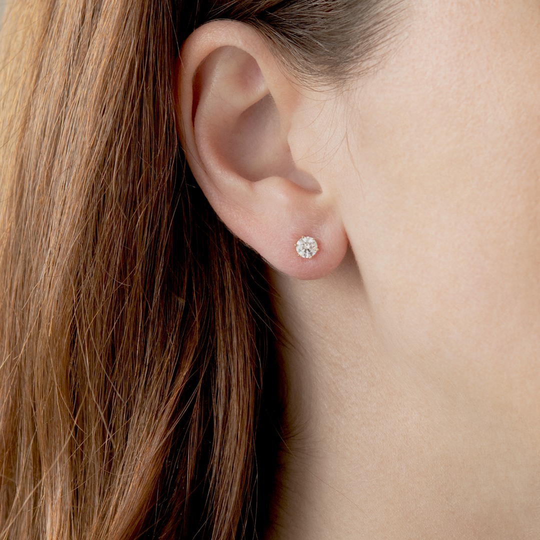 Cercei din aur galben de 14K cu pietre Zirconia incolore.