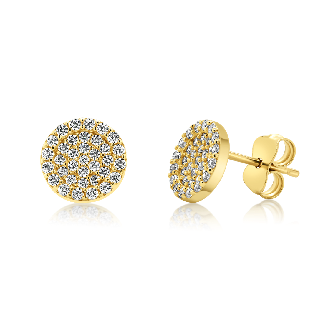 Cercei din aur galben de 14K cu pietre Cubic Zirconia albe.