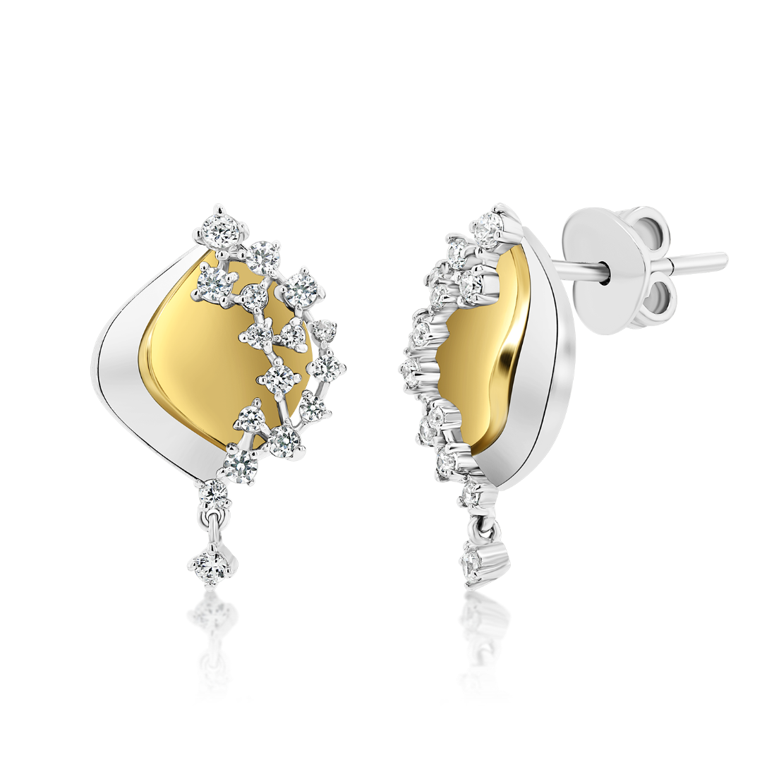 Cercei din aur alb și galben 14K