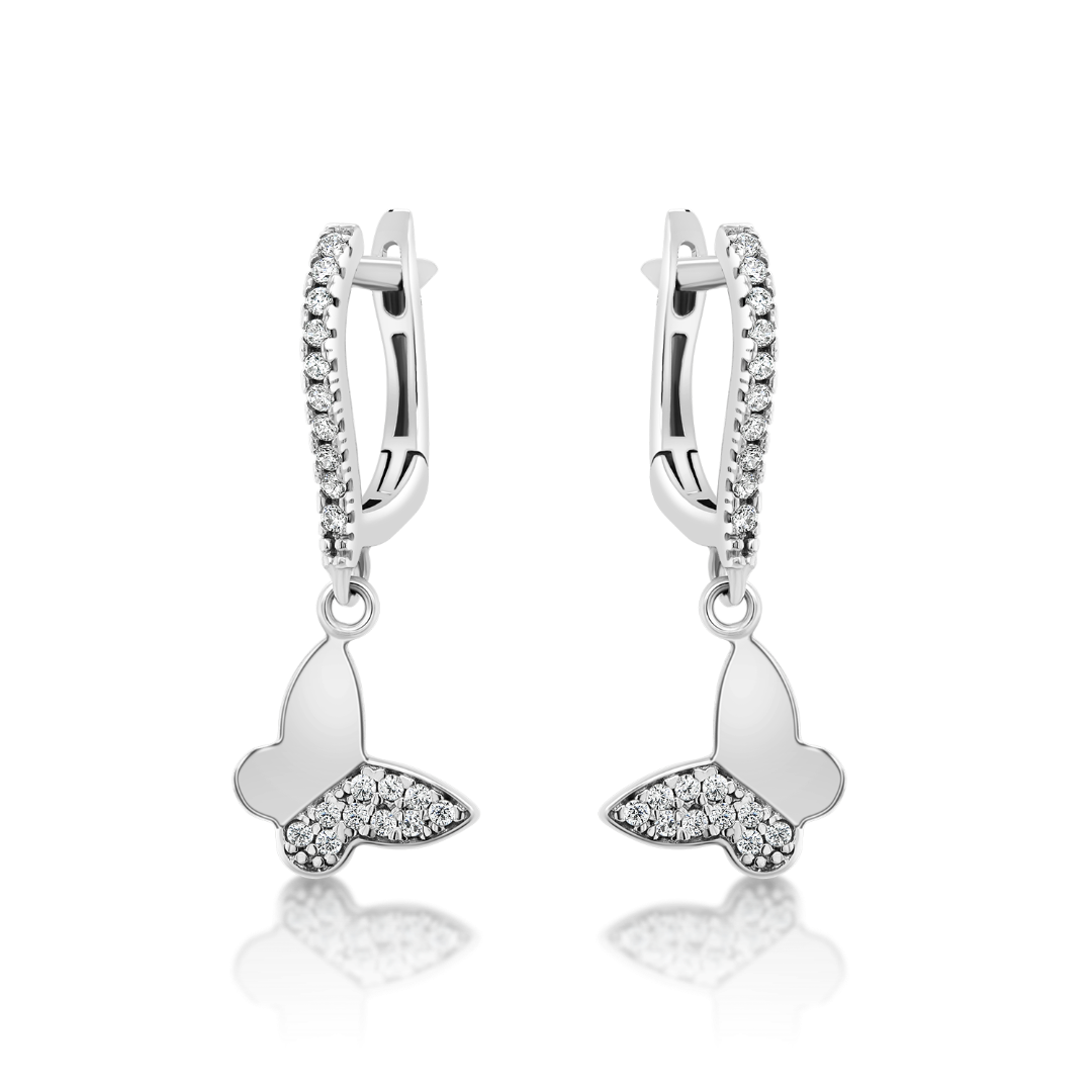 Cercei din aur alb 14K cu fluturași cu pietre Cubic Zirconia albe.