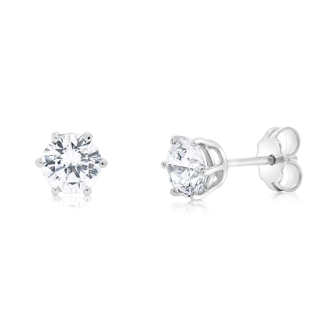 Cercei din aur alb de 14K cu piatră Cubic Zirconia albă.