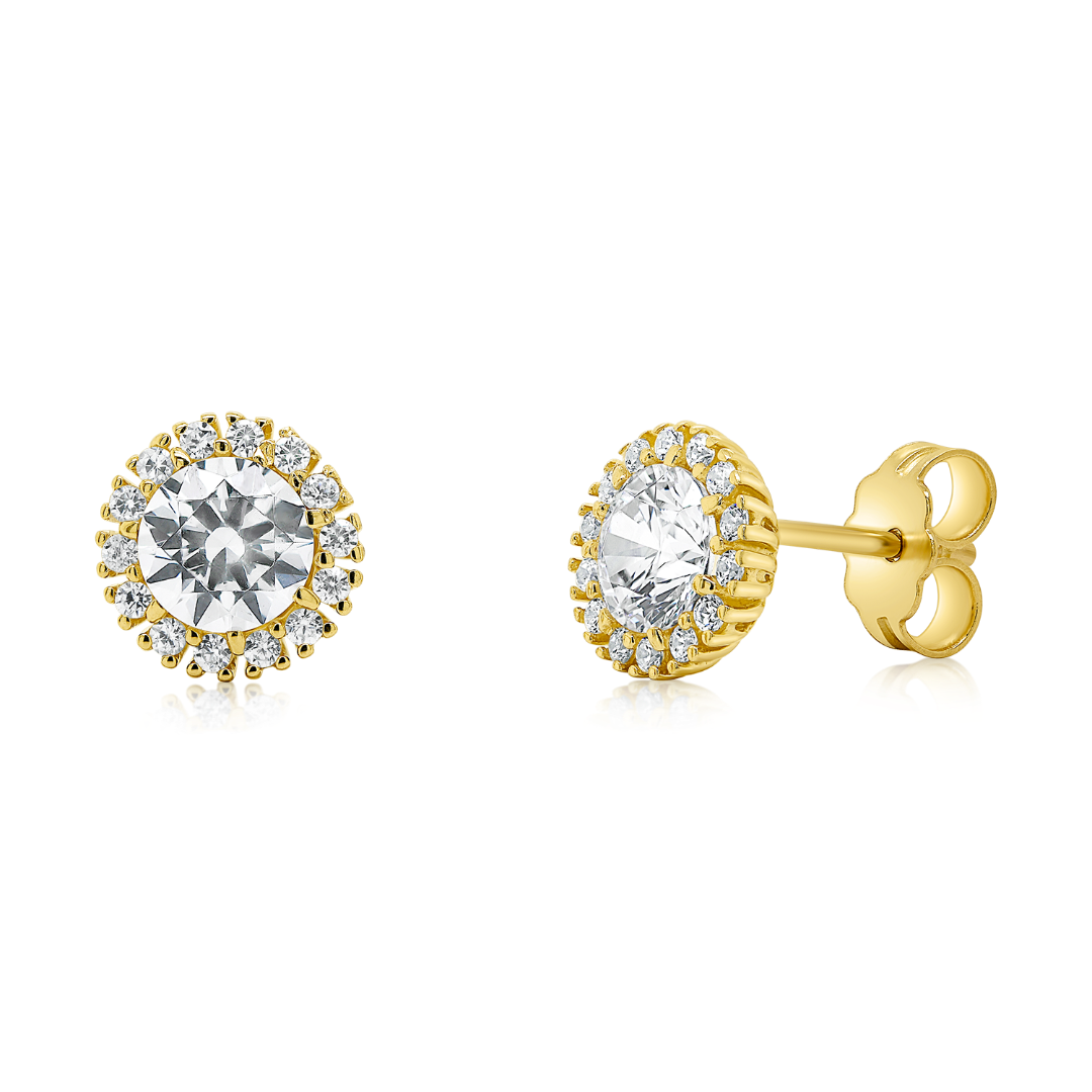 Cercei din aur galben de 14K cu pietre Cubic Zirconia albe.