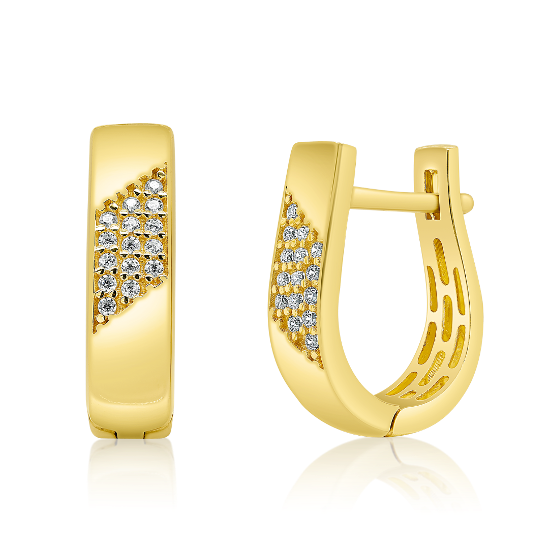 Cercei din aur galben de 14K cu pietre Cubic Zirconia albe.