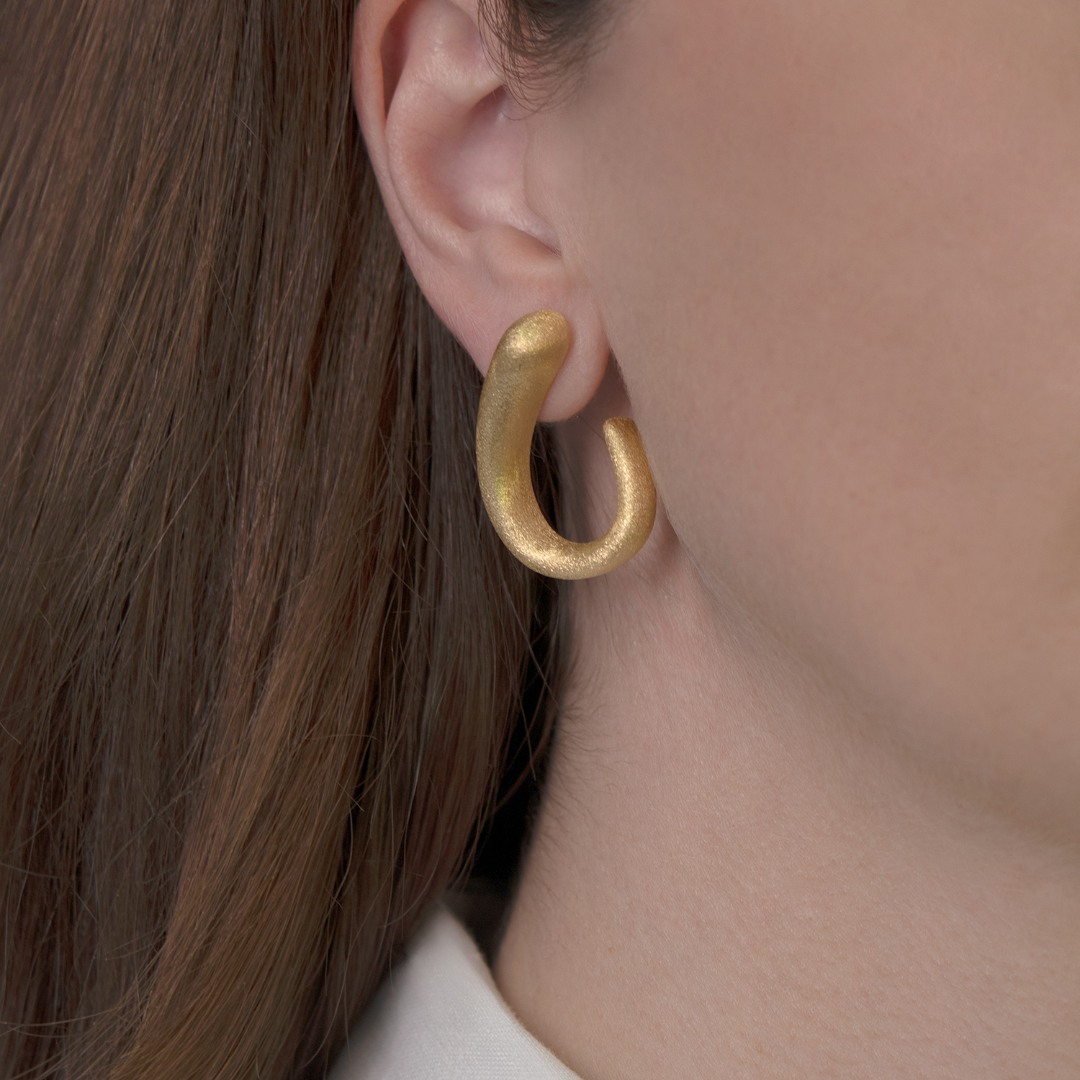 Cercei cu efect satinat din aur galben de 14K.