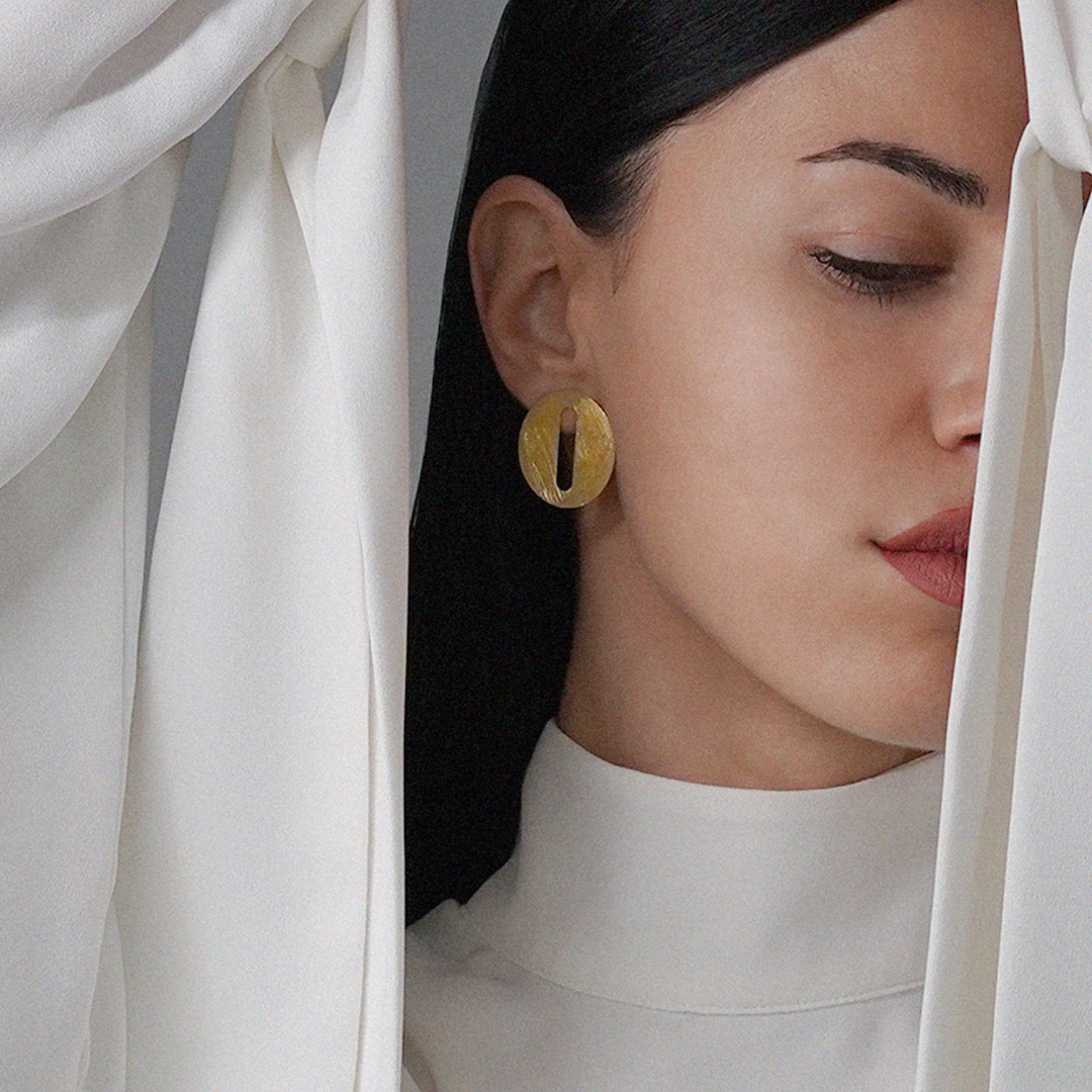 Cercei cu efect satinat din aur galben de 14K.