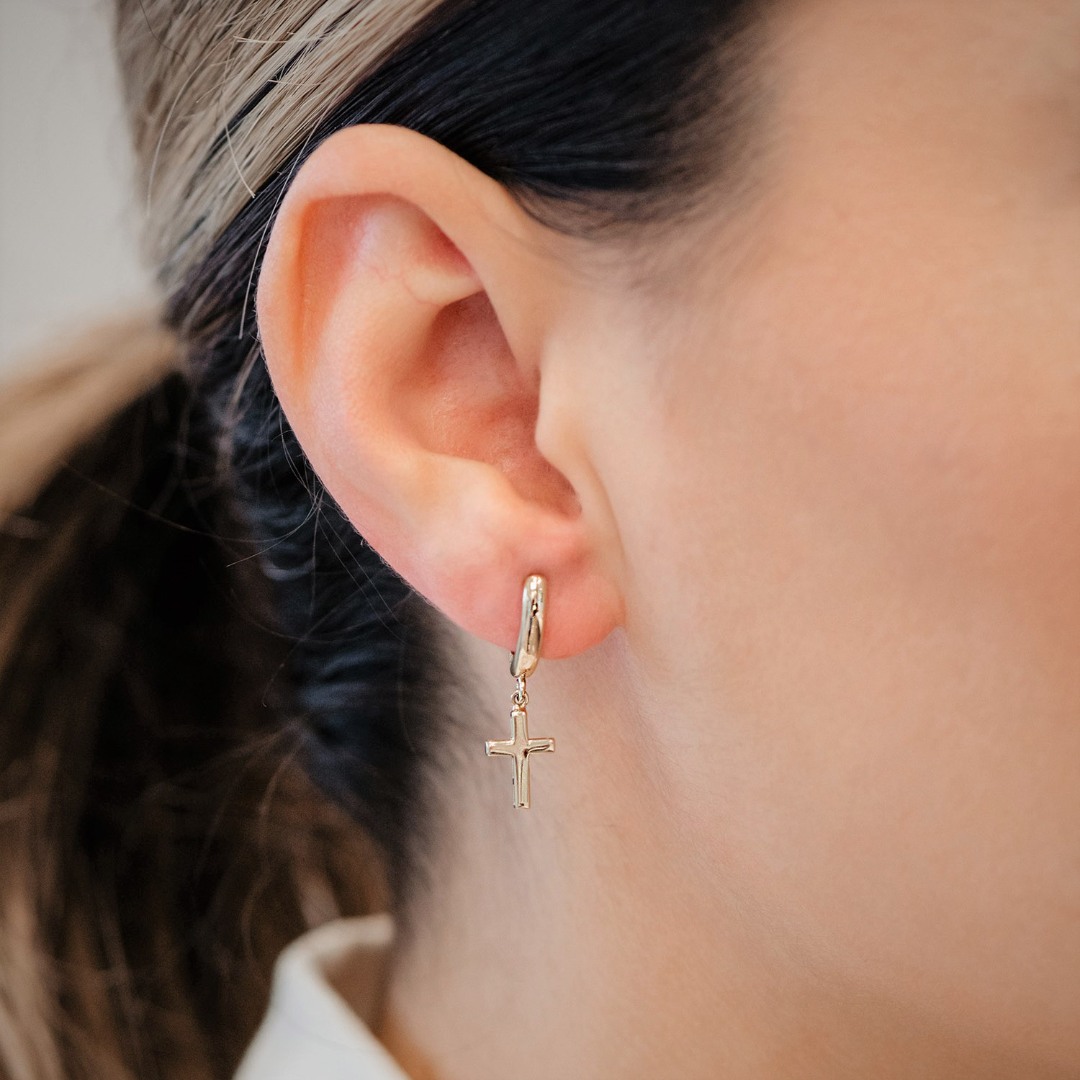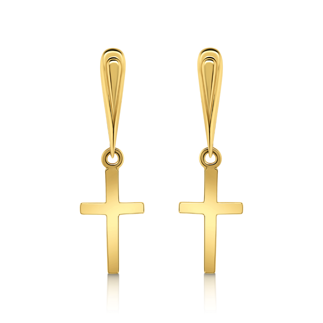 Cercei cu elemente în formă de cruce din aur galben de 14K.