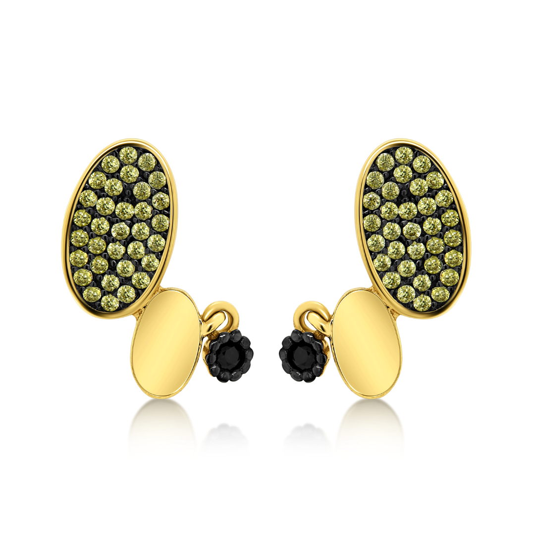 Cercei din aur galben de 14K, cu pietre Cubic Zirconia verzi și negre și rodiu negru