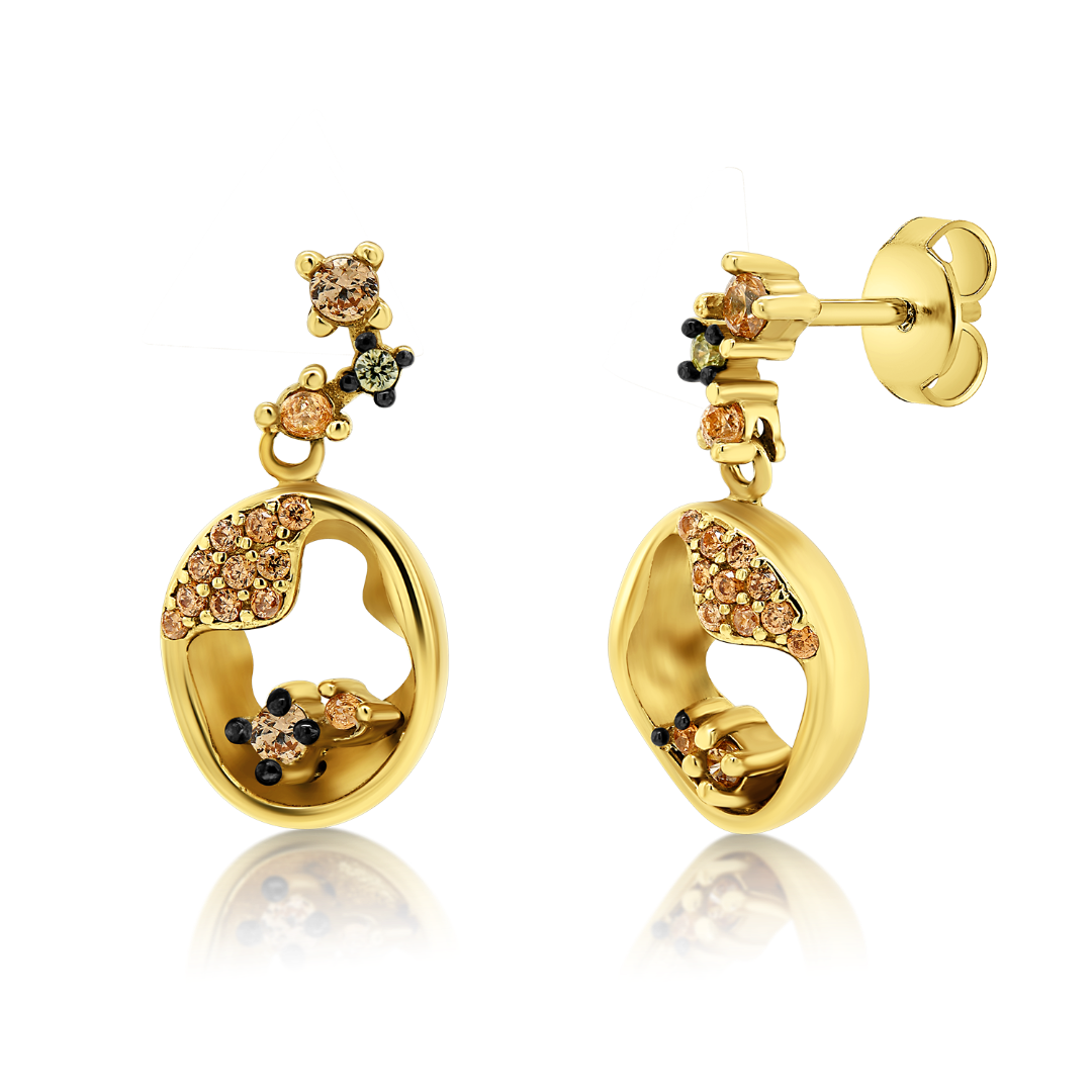 Cercei din aur galben de 14K cu pietre Cubic Zirconia colorate.