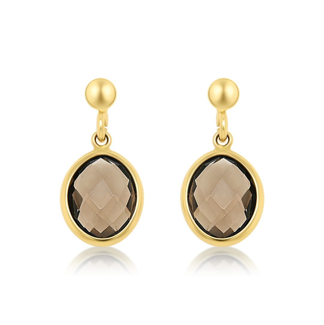 Cercei din aur galben de 14K cu Smoky Quartz