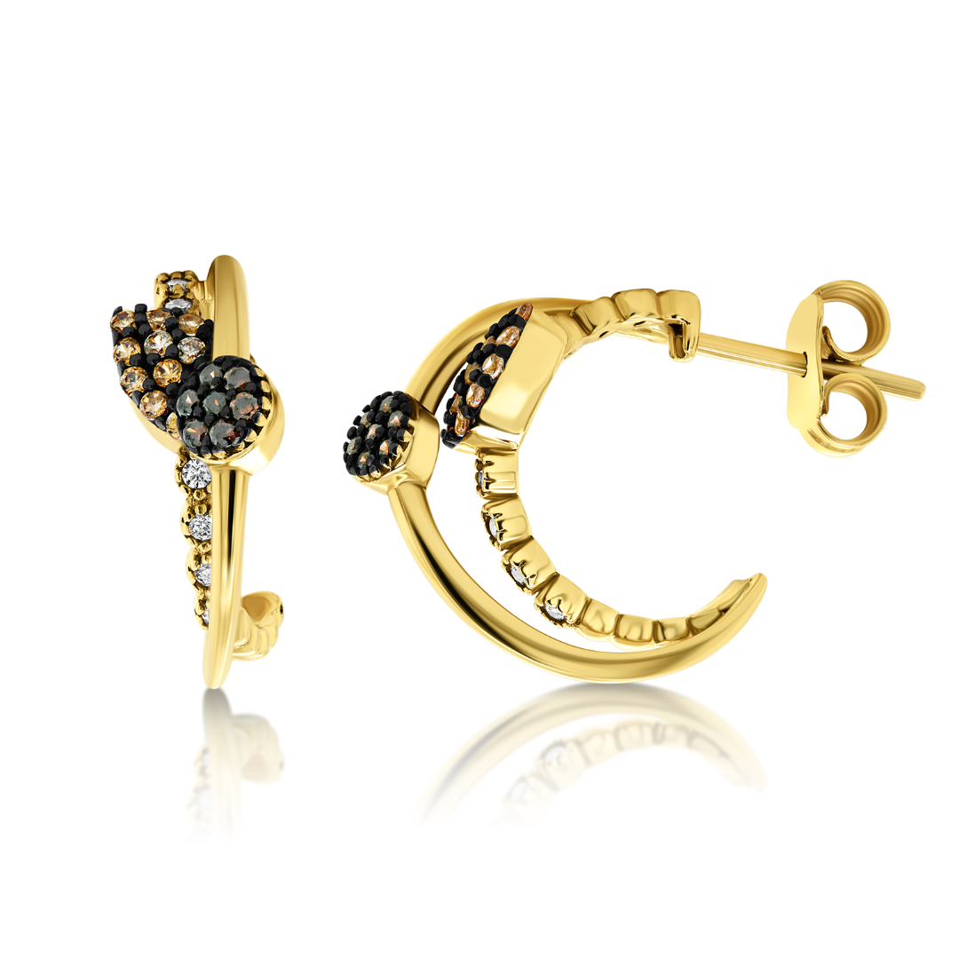 Cercei din aur galben de 14K cu pietre colorate Cubic Zirconia