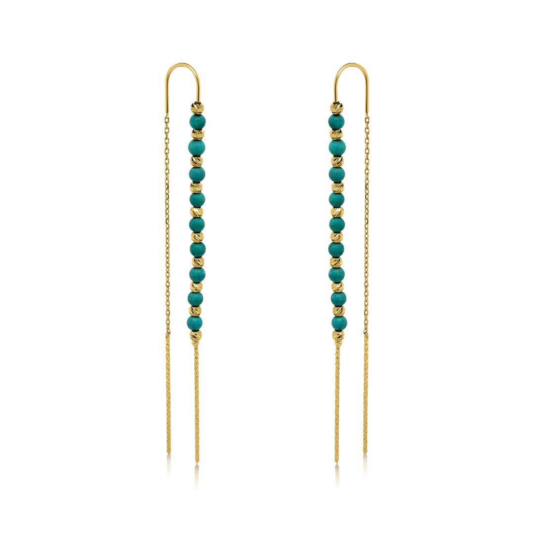 Cercei din aur galben de 14K cu biluțe din aur galben și biluțe colorate.