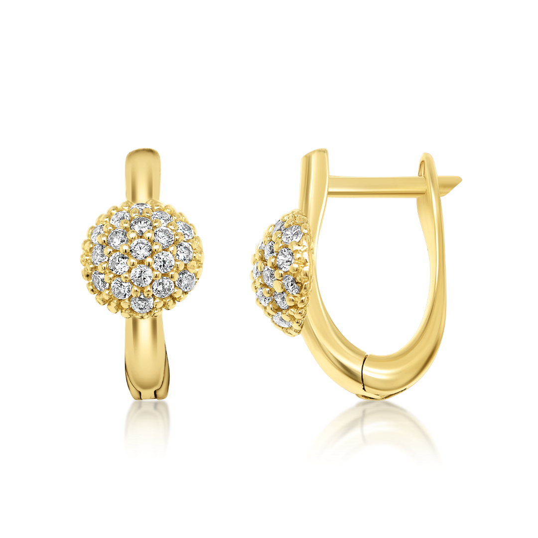 Cercei din aur galben de 14K cu pietre albe Cubic Zirconia.