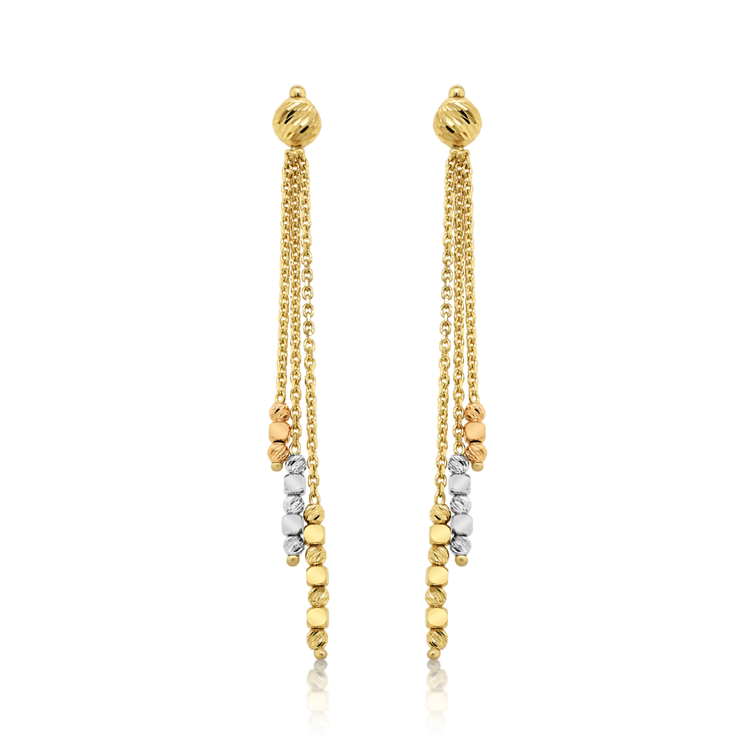Cercei din aur galben de 14K cu elemente din aur galben, roz și alb.