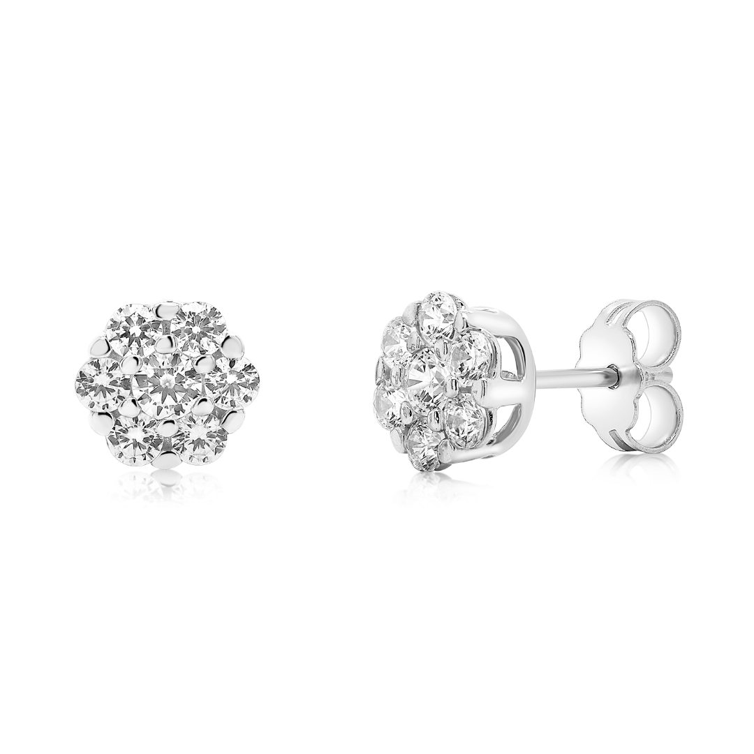 Cercei din aur alb de 14K cu pietre cubic zirconia.
