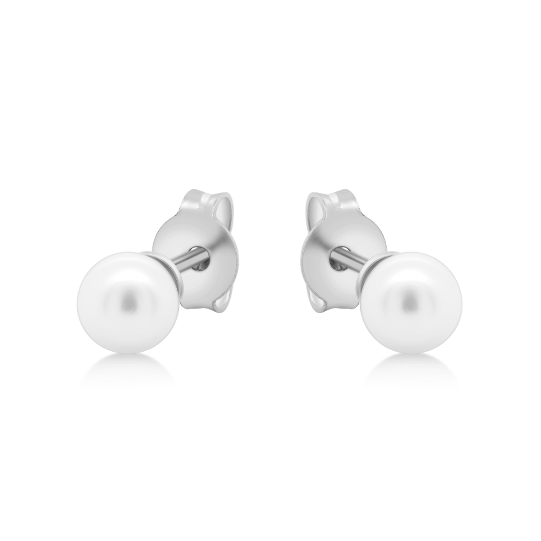 Cercei din aur alb de 14K cu Perle albe de cultură.