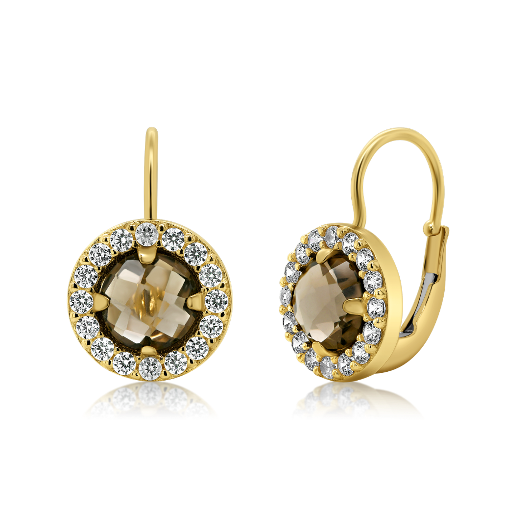 Cercei din aur galben de 14K cu o pietre Cubic Zirconia.