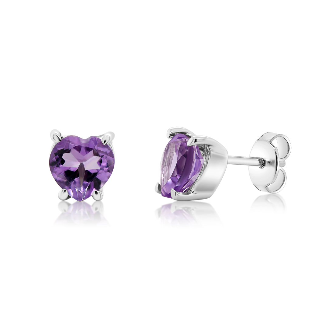 Cercei în formă de inimă din aur alb de 14K cu pietre Cubic Zirconia mov.