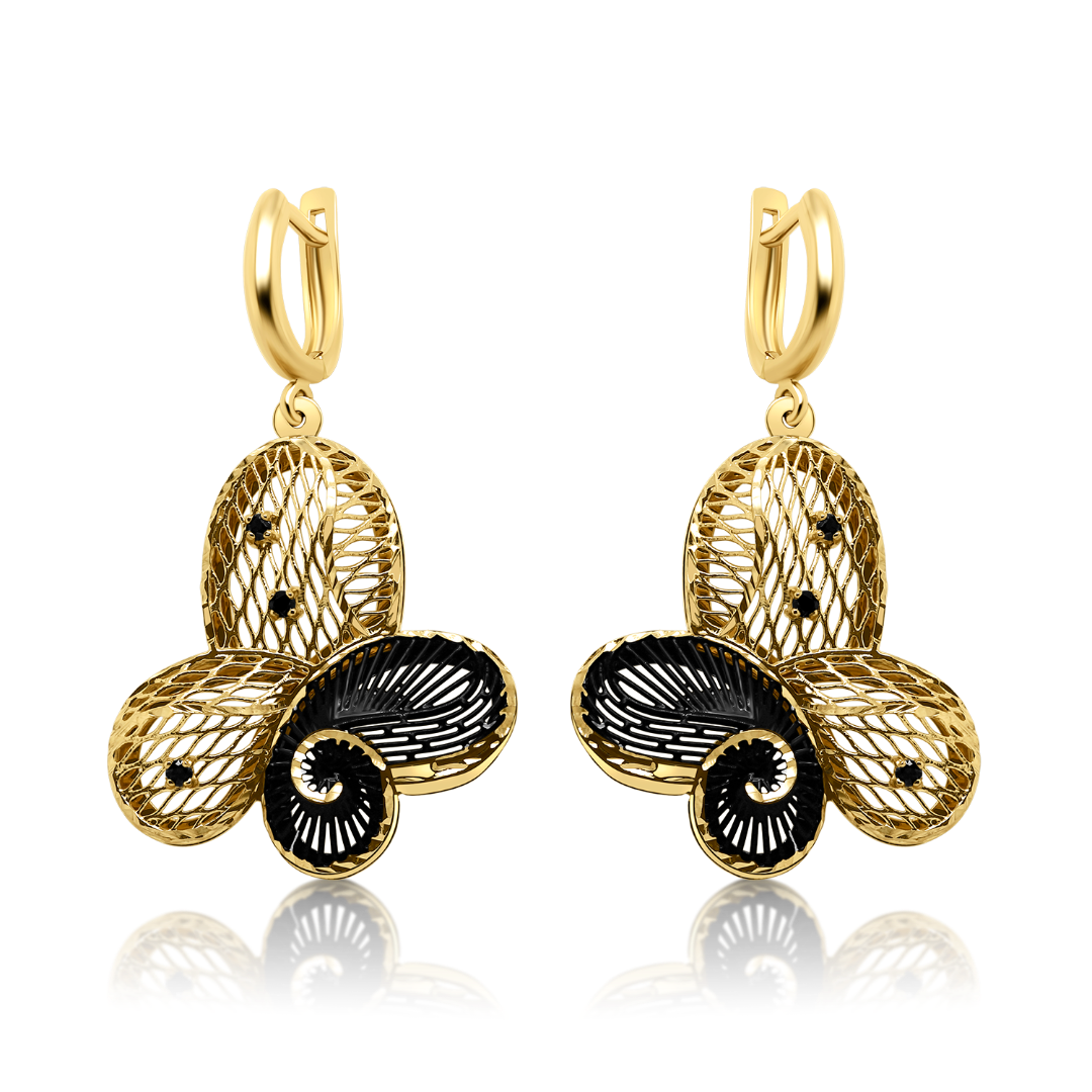 Cercei din aur galben de 14K, cu rodiu negru și pietre Cubic Zirconia.