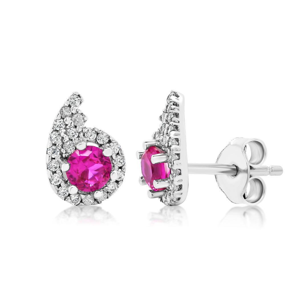 Cercei din aur alb 14K cu piatră centrală roz și pietre Cubic Zirconia albe.