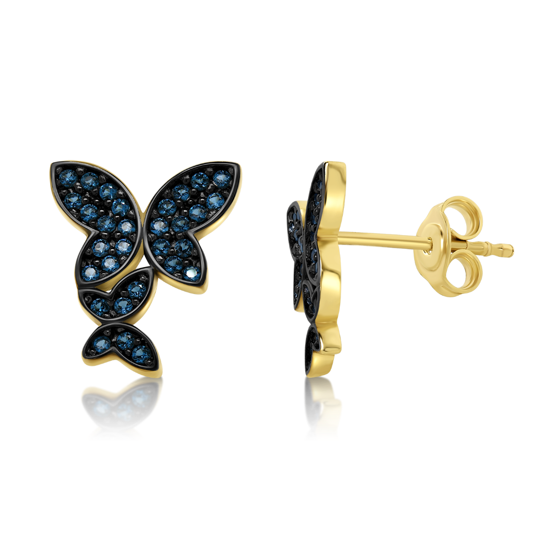 Cercei din aur galben de 14K, cu pietre Cubic Zirconia albastre și Rodiu negru.