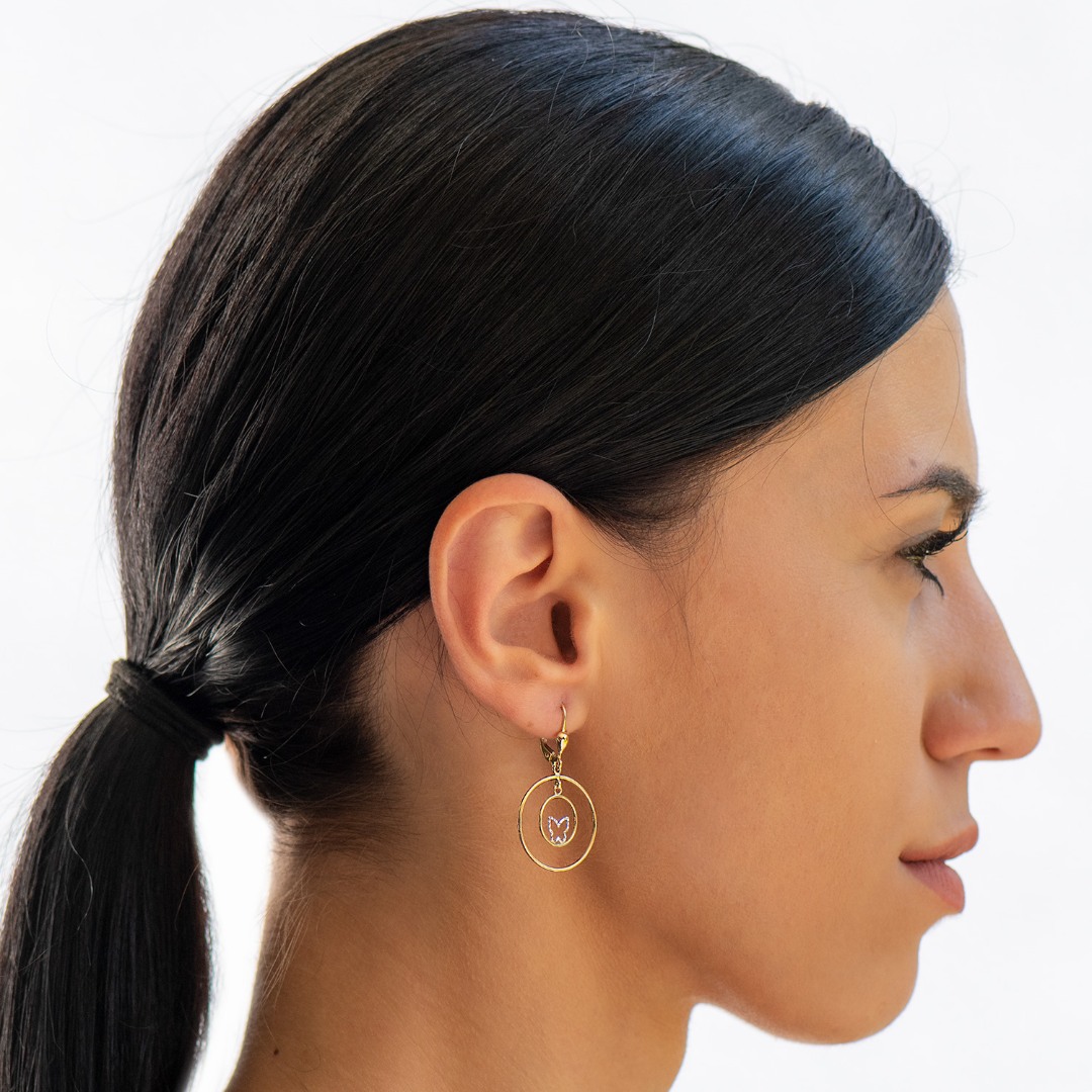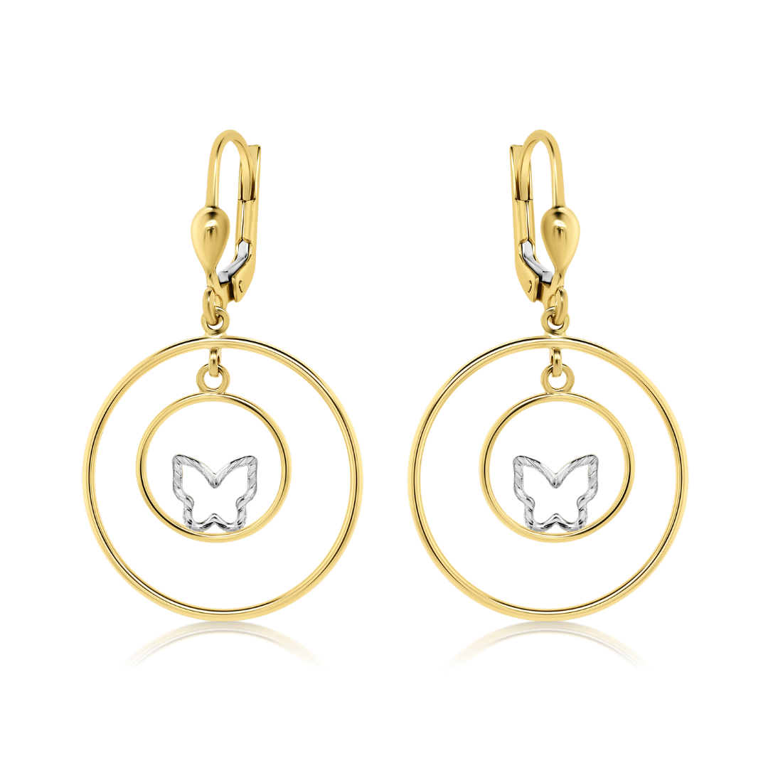 Cercei din aur galben de 14K cu elemente în formă de fluture din aur alb.