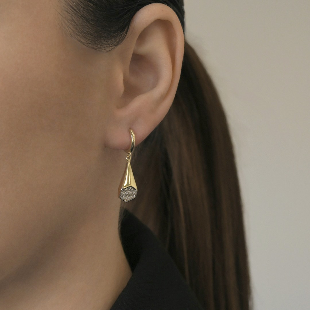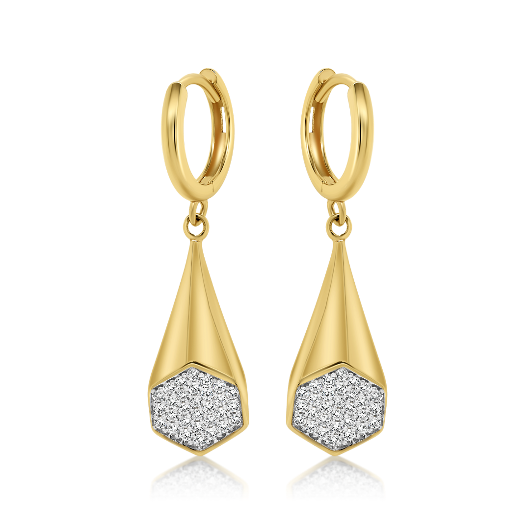 Cercei din aur galben de 14K cu zirconia incolore.