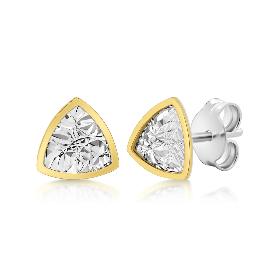 Cercei din aur alb de 14K, cu design fațetat și element din aur galben.