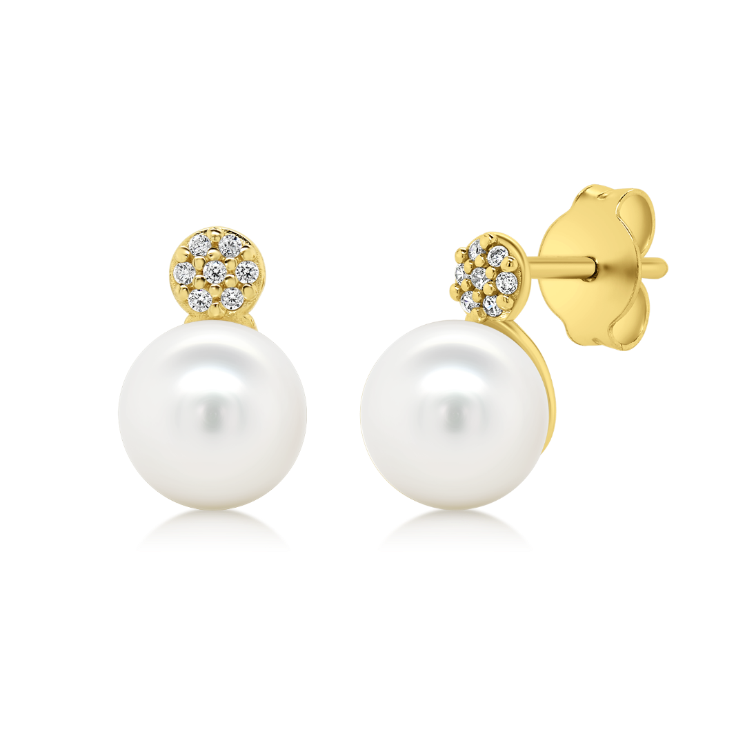 Cercei din aur galben de 14K, cu Perle de cultură și pietre cubic zirconia.