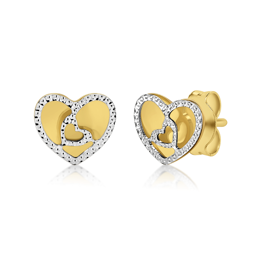 Cercei din aur galben de 14K cu elemente fațetate din aur alb.