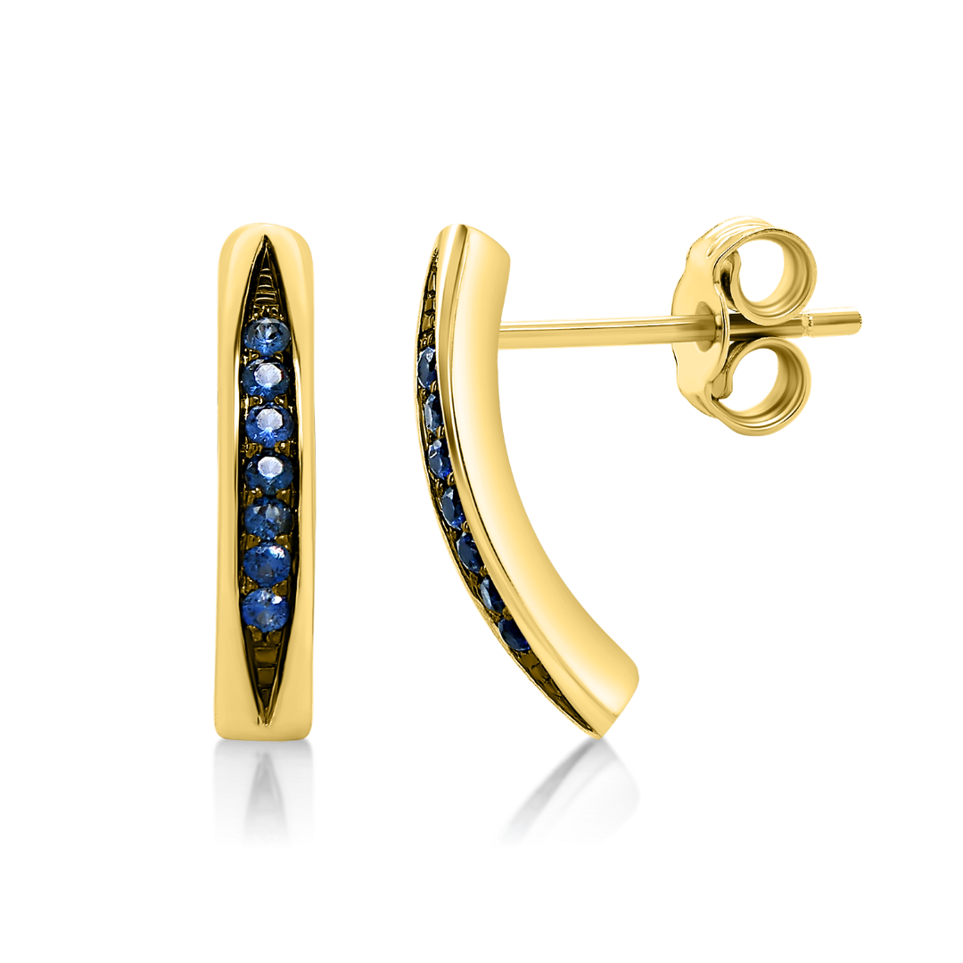 Cercei din aur galben de 18K cu Safire de 0.1ct și rodiu negru.