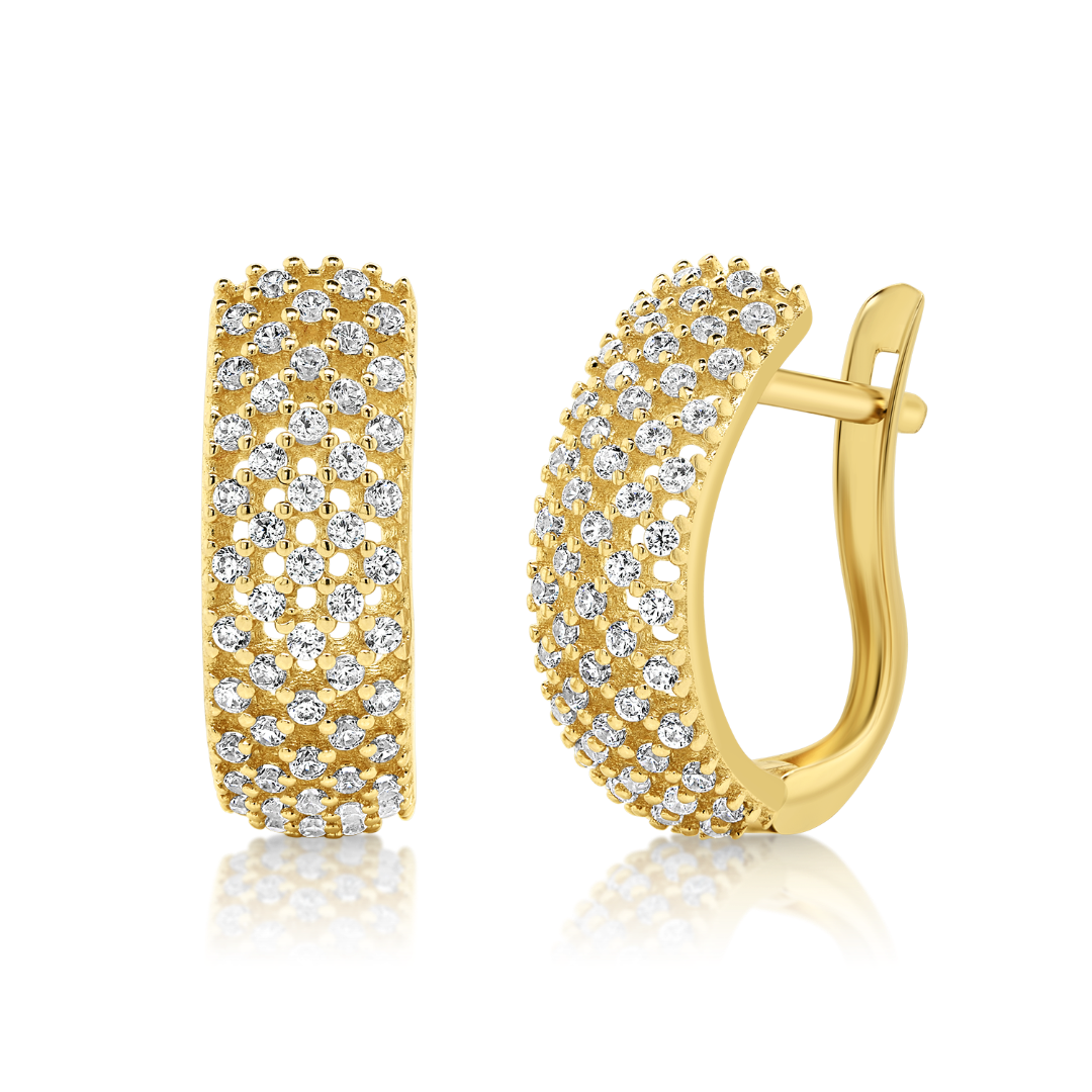 Cercei din aur galben de 14K, cu pietre Cubic Zirconia albe.