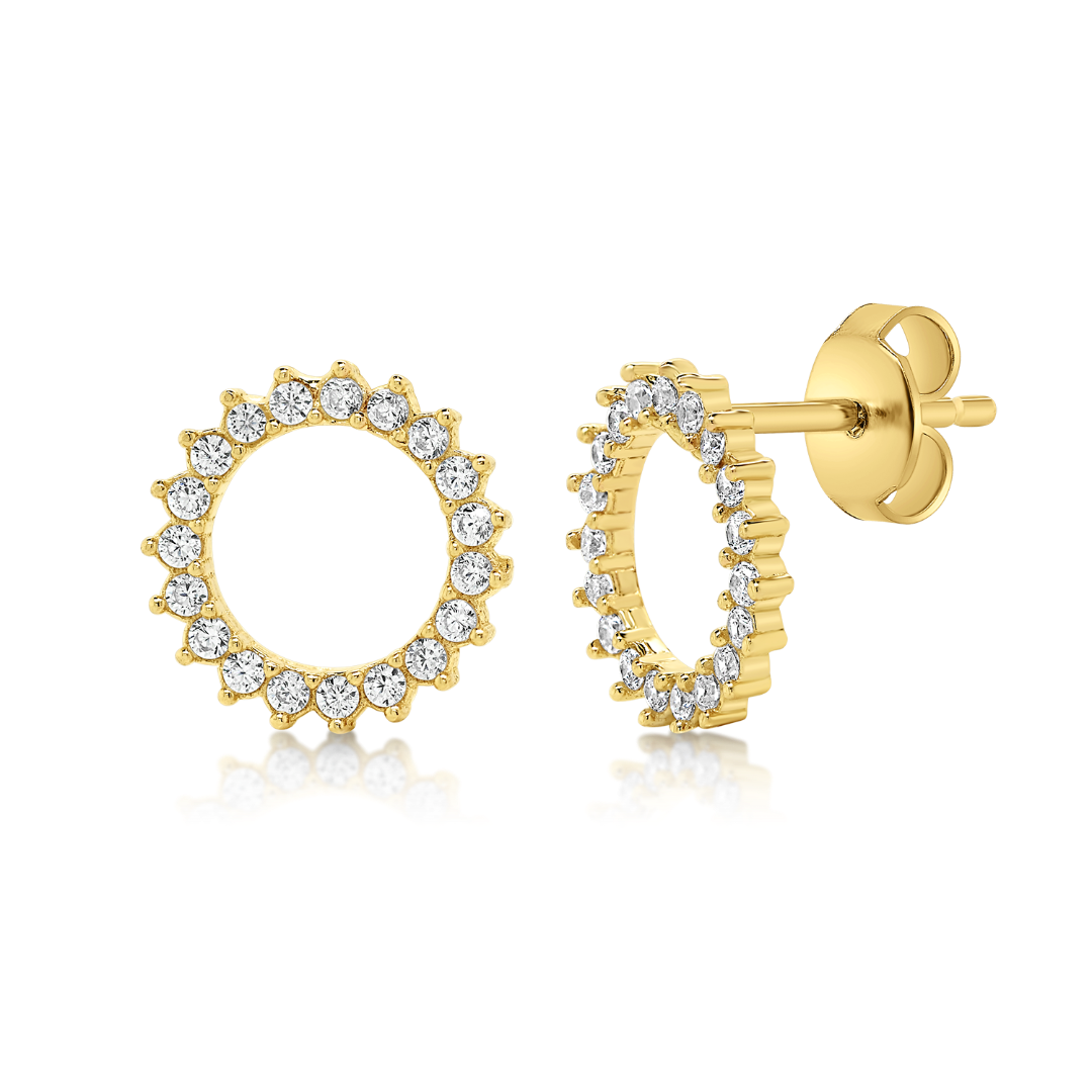 Cercei din aur galben de 14K cu pietre cubic zirconia.