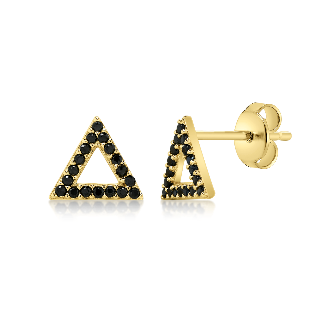 Cercei cu design geometric din aur galben de 14K și pietre Cubic Zirconia negre.