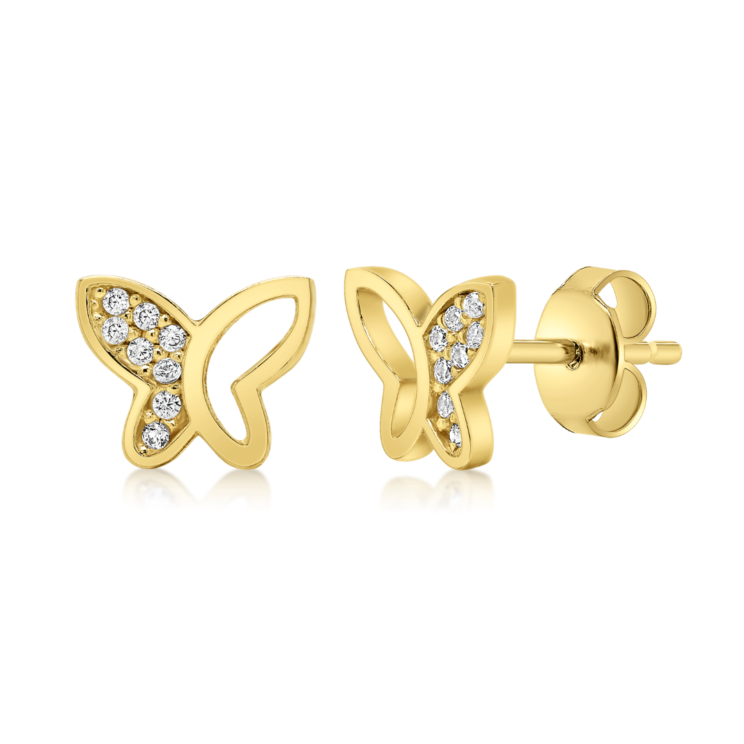 Cercei în formă de fluture din aur galben de 14K și pietre Cubic Zirconia.