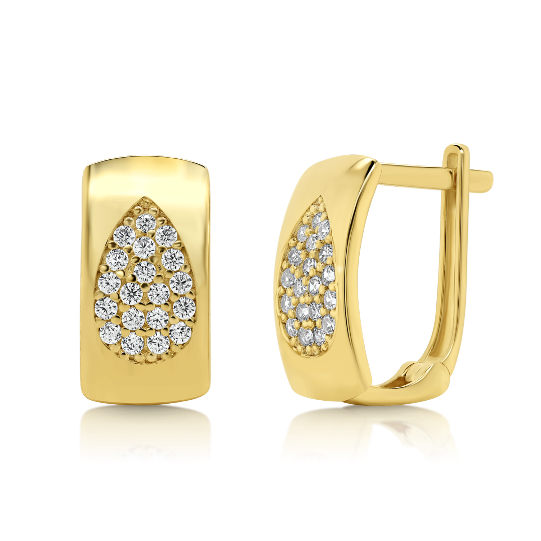 Cercei din aur galben de 14K cu pietre Cubic Zirconia.