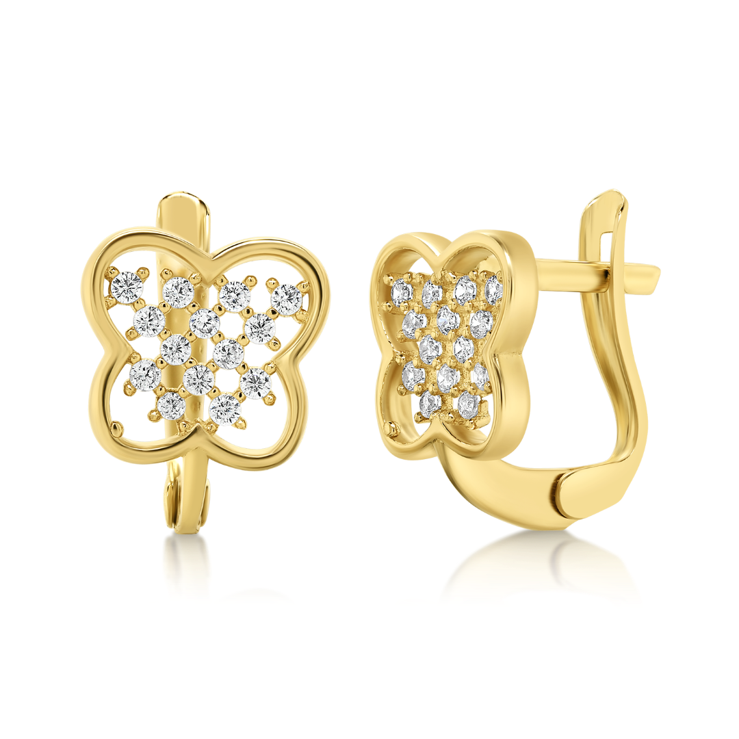 Cercei cu decupaje din aur galben de 14K și pietre cubic zirconia.
