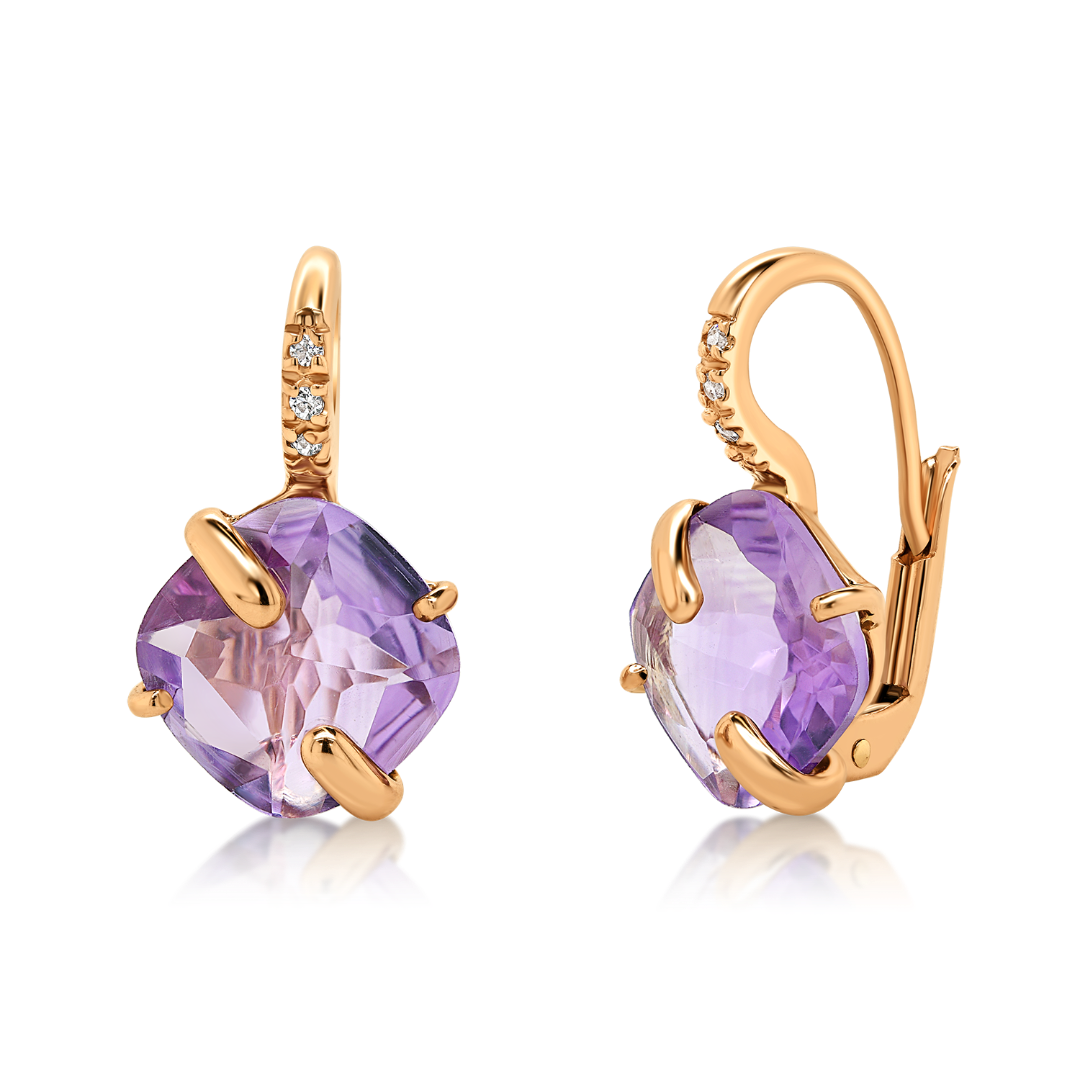 Cercei din aur roz de 14K cu Ametist