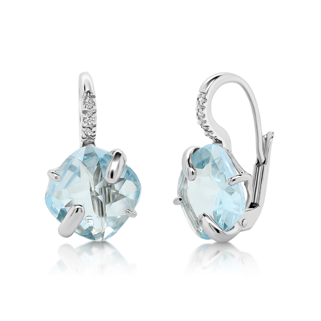 Cercei din aur alb de 14K, cu pietre Cubic Zirconia albe și Blue Topaz.