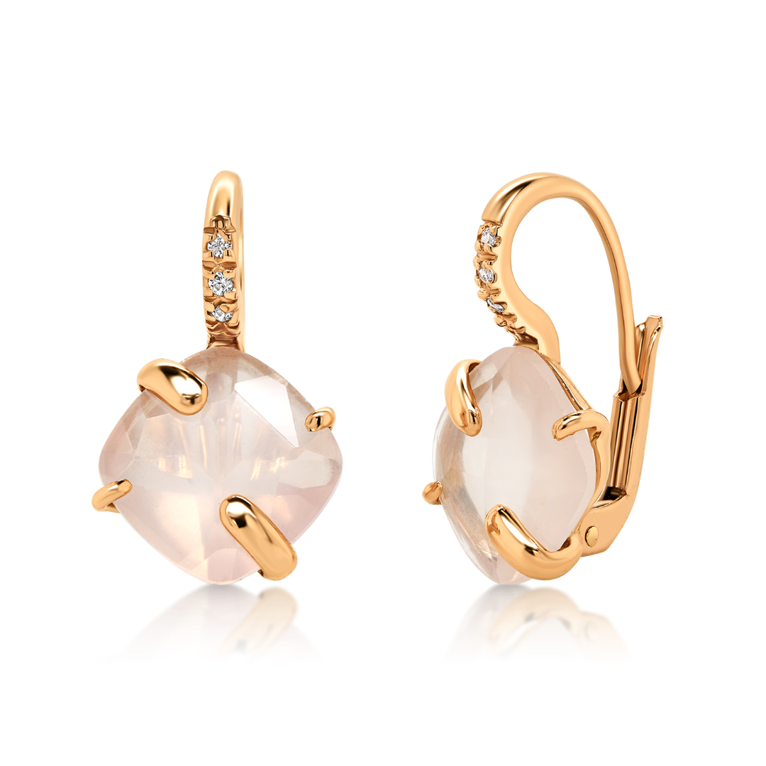 Cercei din aur roz de 14K cu Pink Quartz  și cubic zirconia.