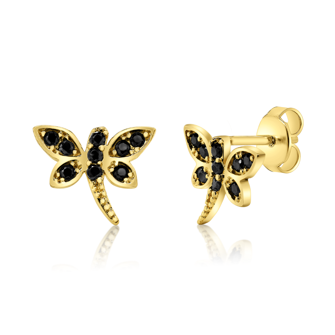 Cercei din aur galben de 14K cu pietre cubic zirconia negre.
