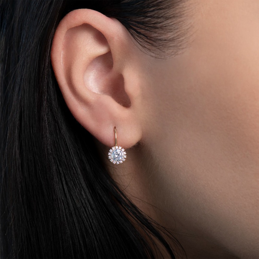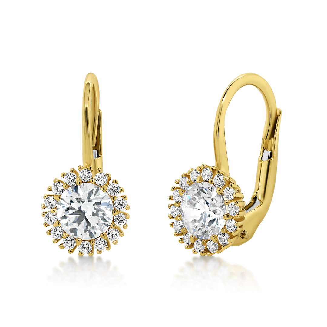 Cercei din aur galben de 14K cu pietre cubic zirconia.